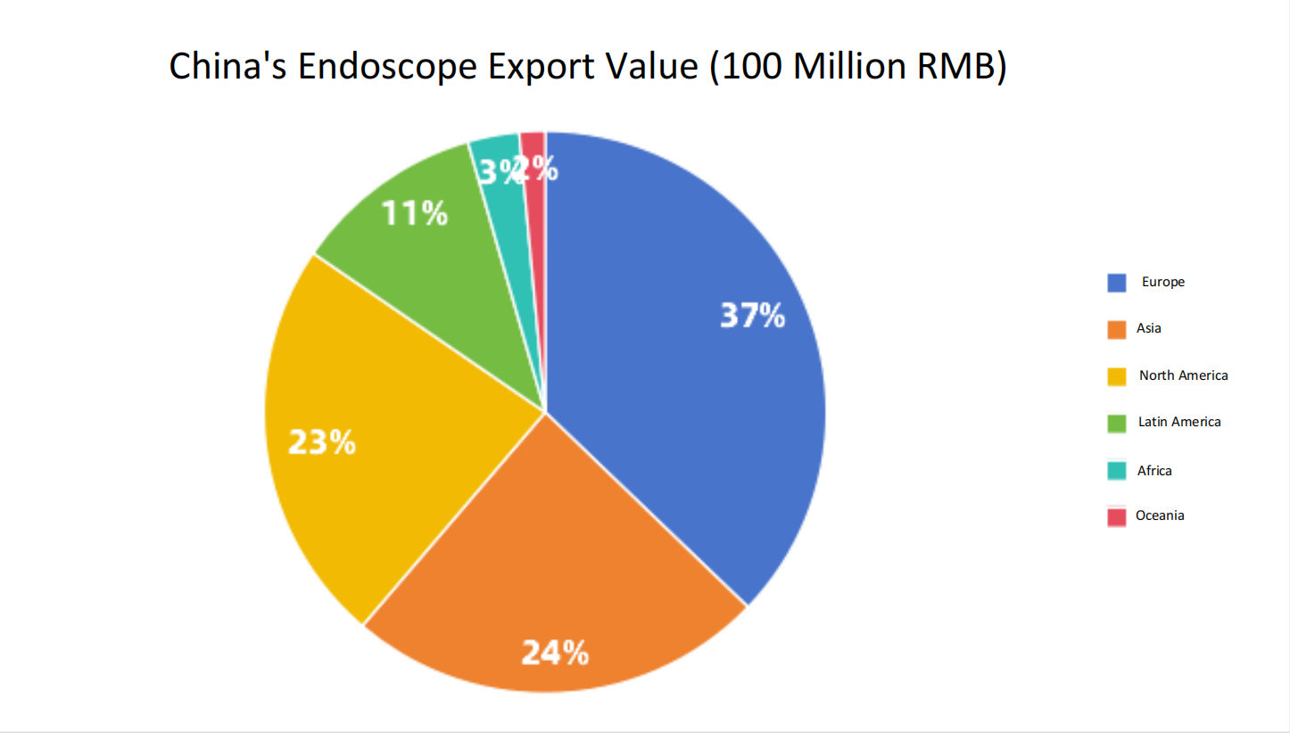 Among China’s endoscope export partners, there are 49 countries and regions in Africa, followed by Asia and Europe. Notably, EU countries account for 65.74% of the export value to European partners.