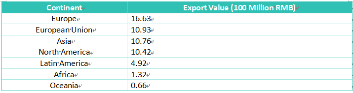 In 2025, the export value reached approximately 4.471 billion RMB. Exports covered 182 countries and regions, with the top 10 accounting for 55.43% of the total. These leading markets are the United States, Germany, France, Russia, Brazil, Belarus, Hong Kong, India, the United Kingdom, and Japan.